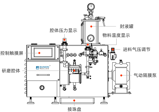 實驗室納米砂磨機(jī)通過 “組件協(xié)同 + 多力作用”,將微米級物料細(xì)化至 50-500nm,核心依賴研磨腔、攪拌系統(tǒng)、研磨介質(zhì)、分離裝置與溫控系統(tǒng)的配合。?工作時先批次加入物料與分散劑,低速攪拌預(yù)混合,讓分散劑吸附顆粒表面防團(tuán)聚。隨后攪拌系統(tǒng)高速旋轉(zhuǎn),帶動 0.2-0.5mm 氧化鋯珠(填充率 70%-80%)形成介質(zhì)流,產(chǎn)生三種關(guān)鍵力:介質(zhì)與組件間的剪切力撕裂顆粒,介質(zhì)碰撞的沖擊力擊碎顆粒,介質(zhì)摩擦的研磨力細(xì)化粒徑。?達(dá)標(biāo)物料在壓力差作用下推向出料口,經(jīng)篩網(wǎng)(孔徑<介質(zhì)粒徑)分離介質(zhì)后排出;未達(dá)標(biāo)則循環(huán)研磨。全程溫控系統(tǒng)通過水冷 / 風(fēng)冷,將研磨腔溫度維持在 25-40℃,避免溫升導(dǎo)致分散劑失效或顆粒團(tuán)聚,實現(xiàn)高效納米級分散。