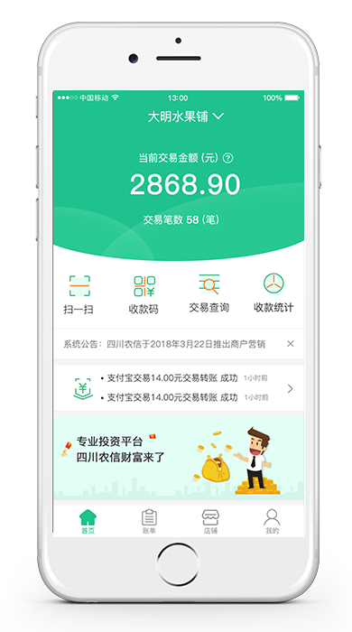 惠支付商戶版app是四川農(nóng)商銀行面向入駐商戶推出的一款高效、安全的掃碼支付收單產(chǎn)品,滿足商戶一點(diǎn)式接入、一站式資金結(jié)算和對(duì)賬需求,為商戶提供收銀、賬單、管理、營銷解決方案。整合了支付寶、微信、銀聯(lián)等多個(gè)支付渠道,一碼多掃,方便快捷。只需一個(gè)手機(jī)即可隨時(shí)隨地的掃碼收款,輕松掌握店鋪經(jīng)驗(yàn)狀況,是商家的收款小工具、經(jīng)營小管家、管理小助手。商戶下載app即可免費(fèi)在線申請(qǐng)入駐,馬上掃碼下載吧!